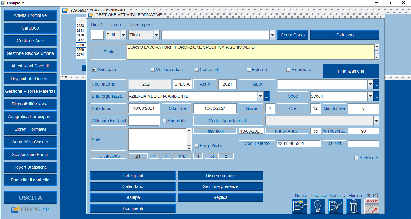 - Catalogo corsi: creazione percorsi, edizioni, sedi e aule.